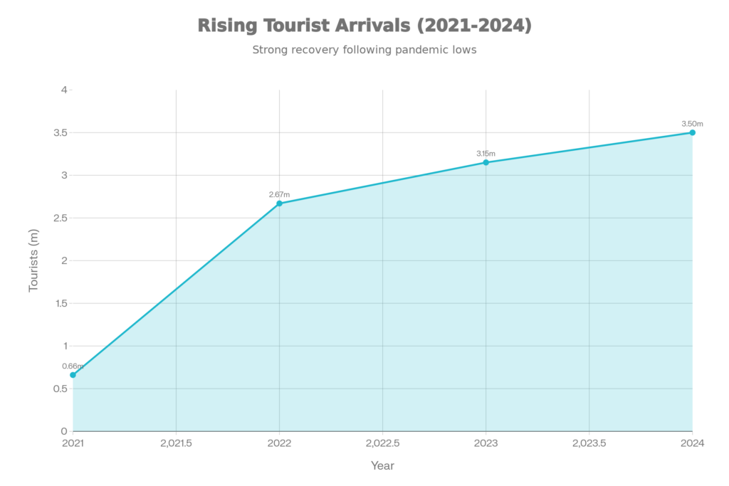 The most visible sign of this shift is the tourism sector. In 2024, Kashmir welcomed a record-breaking 3.5 million tourists, including over 43,000 foreigners